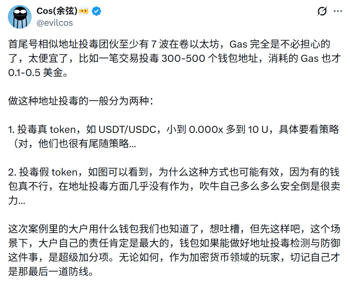 由于 Gas 成本极低,攻击者可以批量投毒数百甚至上千个地址,等待少数用户在复制粘贴中犯错。成功一次,收益远高于成本。