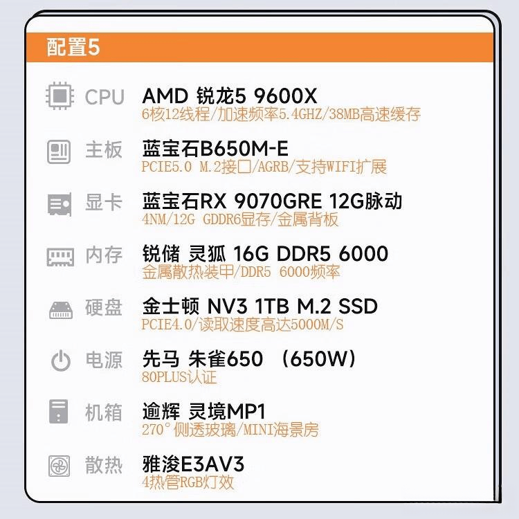 高性能处理器:搭载AMD锐龙R5 9600X,轻松应对多任务,让您的工作与娱乐体验更加流畅无阻。