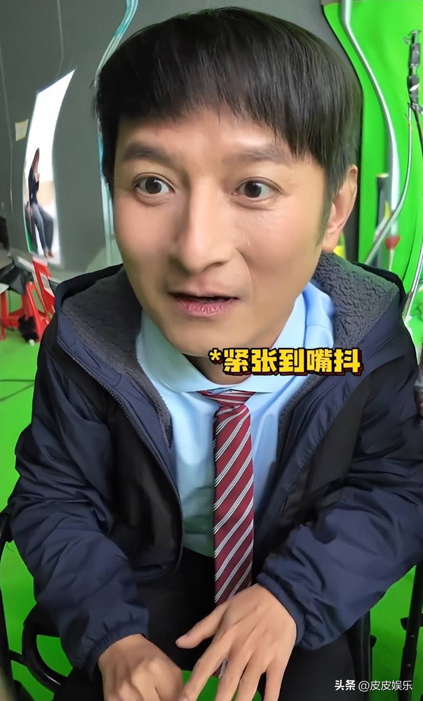 外面搭配着一件深色的棉服,看背景是绿幕,应该是在录影棚里,这条视频是他跟新生代主持人齐思钧,吴泽林三人一起录制的。