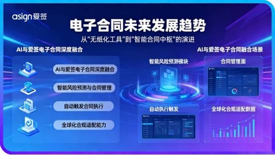 电子合同的发展正从“无纸化工具”向“智能合同中枢”演进。未来,我们将看到AI与爱签电子合同的深度融合,实现更智能的风险预测和合同管理;以及为满足企业出海需求,平台将提供更完善的全球化合规适配能力。