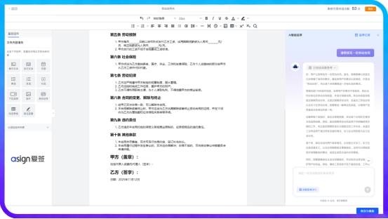 准备合同文件:双方确认合同条款,建议将文件转换为PDF等防篡改性能较好的格式。也可以使用爱签电子合同的AI功能:智能起草,帮你秒生合同。